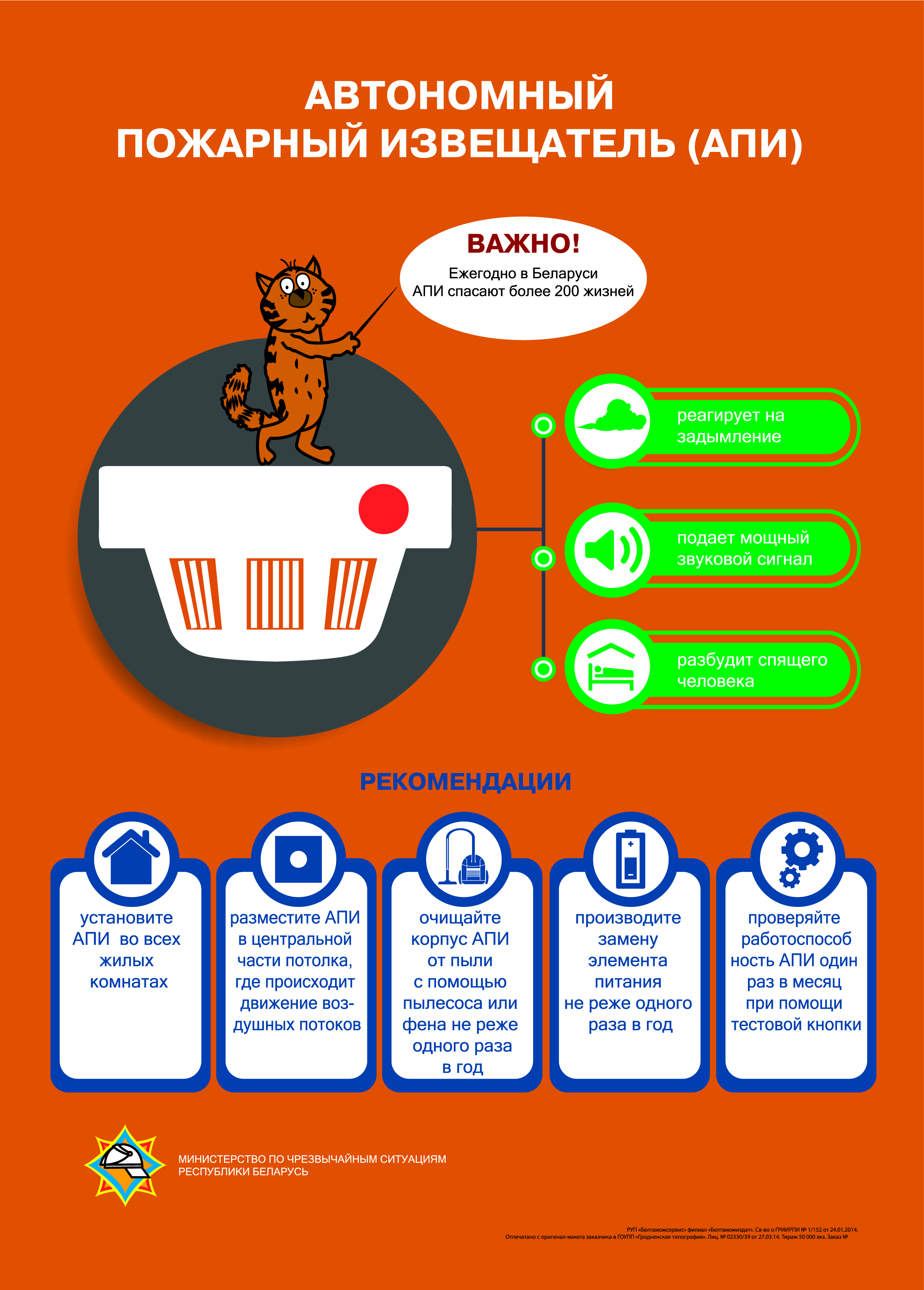 периодически проверять его работоспособность и раз в год менять батарейку.