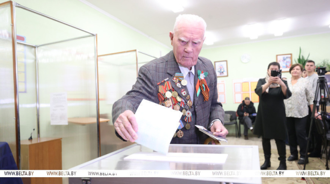 21 студзеня, Брэст /Кар. БЕЛТА/. Хачу, каб Беларусь была моцнай як эканамічна, так і ў ваенных адносінах. Такое меркаванне выказаў ветэран Вялікай Айчыннай вайны Анатоль Феафанаў, прыйшоўшы на выбарчы ўчастак у першы дзень датэрміновага галасавання на выбарах Прэзідэнта Рэспублікі Беларусь, перадае карэспандэнт БЕЛТА.