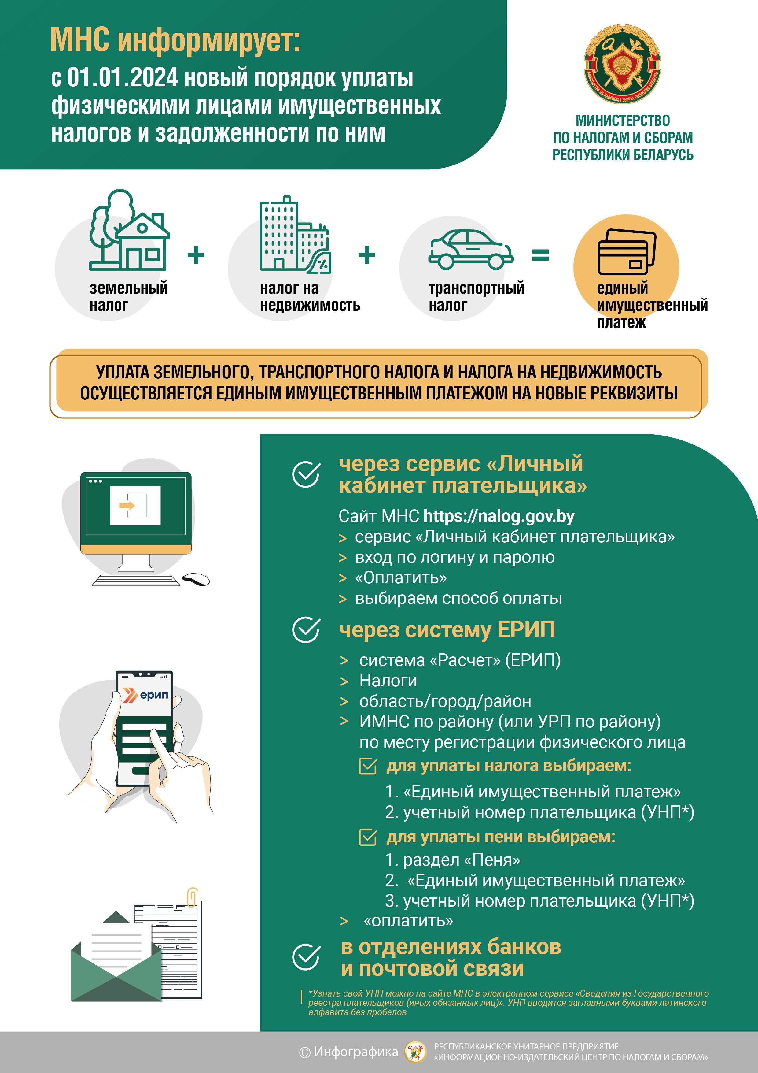 МНС информирует: с 01.01.2024 новый порядок уплаты физическими лицами имущественных налогов и задолженности по ним